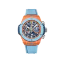 - Dial: Matte sky blue and orange, with skeletonized open-work design for modern flair.