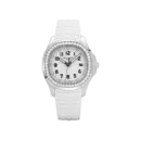 - Bracelet: White composite rubber strap with stainless steel clasp
