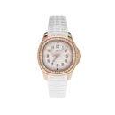 - Bracelet: White embossed composite rubber strap with rose gold Aquanaut fold-over clasp.