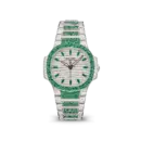 - Bracelet: Integrated 18K white gold bracelet, gem-set with diamonds and emeralds to match the case.