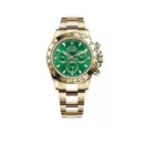 The Rolex Cosmograph Daytona Ref. 116508‑0013 masterfully combines performance and prestige. Its fully yellow-gold construction radiates luxury, while the vibrant green dial introduces an unexpected, modern twist to the classic Daytona aesthetic. The contrasting tones, subtle red highlights, and Chromalight lume enhance both functionality and appeal. Housing the advanced Calibre 4130, this Daytona offers cutting-edge chronograph precision, a 72-hour reserve, and everyday resilience. Endorsed by collectors, musicians, and athletes alike, it’s far more than a chronograph—it’s a statement of bold individuality, mechanical excellence, and collectible value.