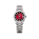 the Datejust 31 features a captivating red ombré dial and diamond-set details that add brilliance and sophistication to every outfit.