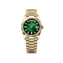 The Rolex Day‑Date 36 in solid 18 kt yellow gold (Ref. M128238‑0069) epitomizes Rolex’s legacy of elegance, precision, and prestige. This exceptional 36 mm model features the celebrated green ombré dial with diamond hour markers and classic President bracelet, designed for those who value luxury that transcends time.