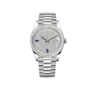- Bracelet: Iconic President bracelet in platinum with semi-circular three-piece links and concealed Crownclasp.