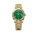 Crafted in Yellow Gold and paired with the legendary President bracelet, this model features a vivid green dial