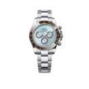 The Rolex Daytona Ref. 126506‑0001 is a masterful blend of racing DNA and precious-metal luxury. Its platinum case and bracelet weight over 200 grams, delivering a presence both visually and physically. The unique ice-blue dial—a signature reserved for Rolex platinum models—paired with the chestnut brown bezel gives this Daytona a strong identity among collectors and enthusiasts. Powered by the high-performance Caliber 4131, it offers precision, chronograph functionality, and a robust 72-hour power reserve. Whether worn as an investment piece or on the track, it’s a landmark expression of Rolex’s craftsmanship and automotive heritage.