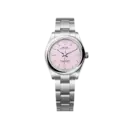 through its soft candy pink dial and perfectly balanced 31mm case.