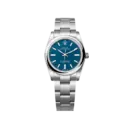 housed in Oystersteel, paired with a smooth domed bezel and the iconic Oyster bracelet.