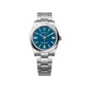 The Ref. 126000-0015 features a medium blue dial paired with a domed bezel and Oyster bracelet,
