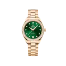 - Bezel: Paved with brilliant-cut diamonds, adding luxurious sparkle to the wrist.